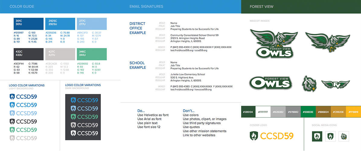 This level of storytelling has traditionally been the domain of independent schools, charters, colleges, and universities. But public schools benefit just as much when they invest in narrative clarity. Community Consolidated School District 59 outside Chicago is a great example. Their brand guidelines aren’t decorative; they shape communication across the entire district.